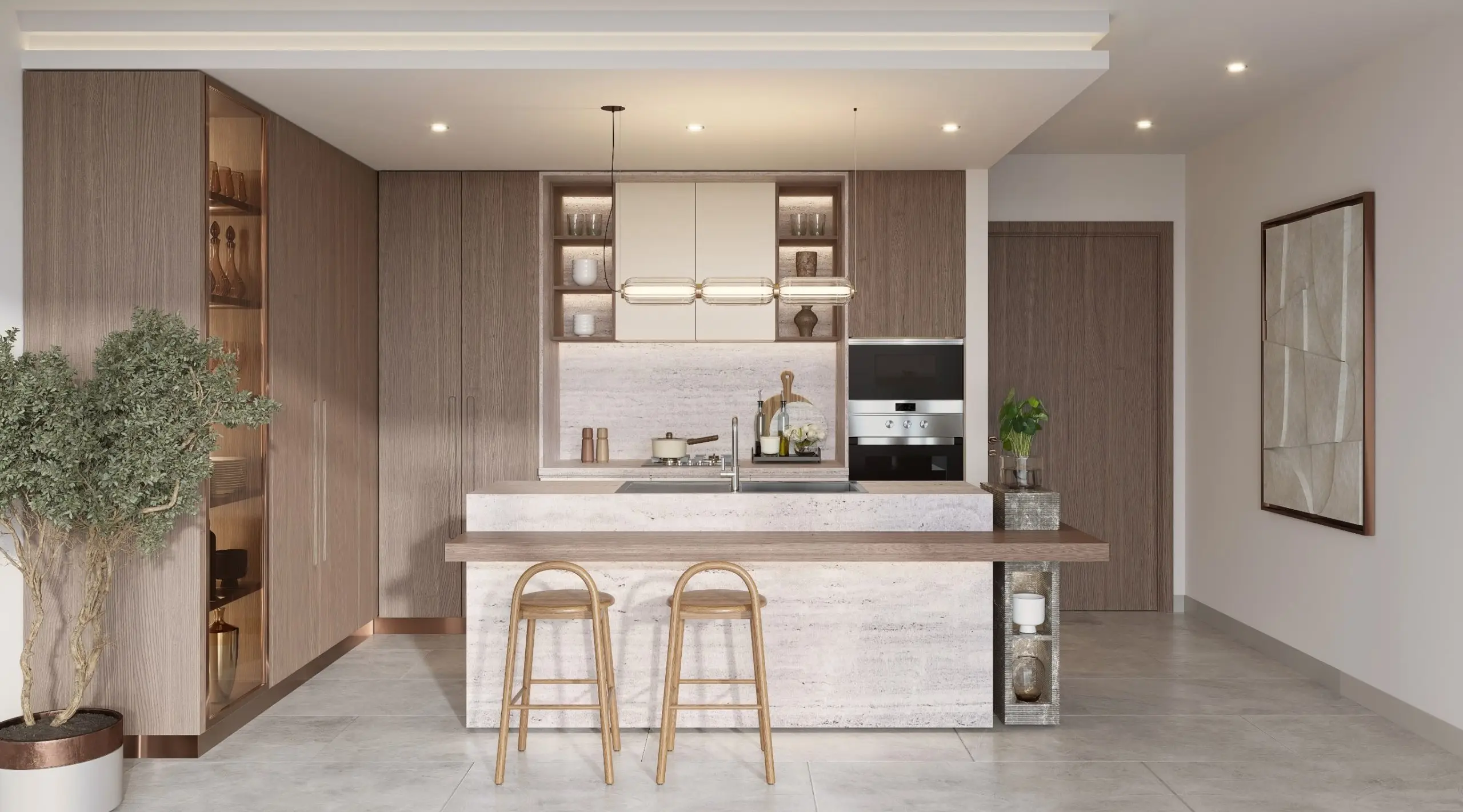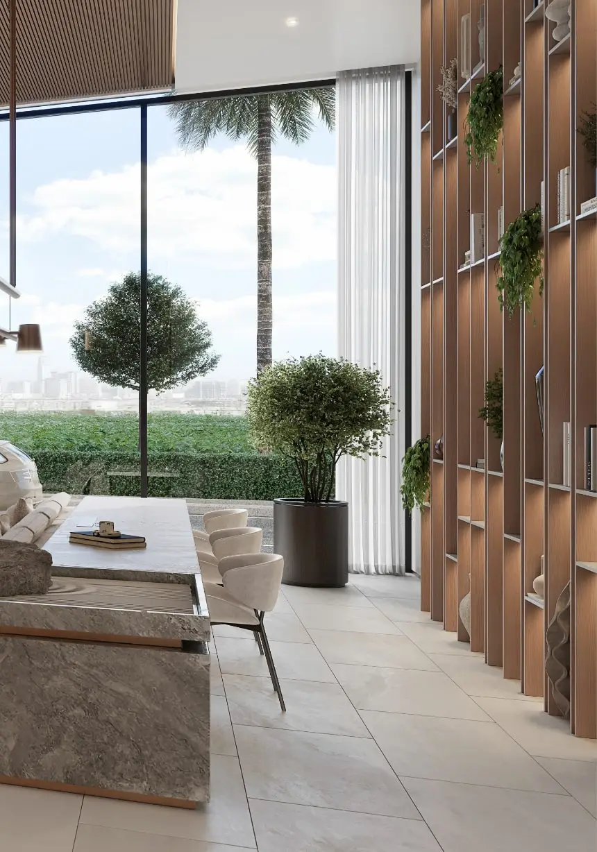 SERENZ showcases modern minimalism where luxury meets simplicity in perfect harmony. Every residencefeatures seamless fi nishes, fl uid open-plan spaces, and refi ned architectural details that create an effortlesslyelegant atmosphere. The interiors blend contemporary aesthetics with functional design, creating spaces that areboth visually stunning and highly livable.